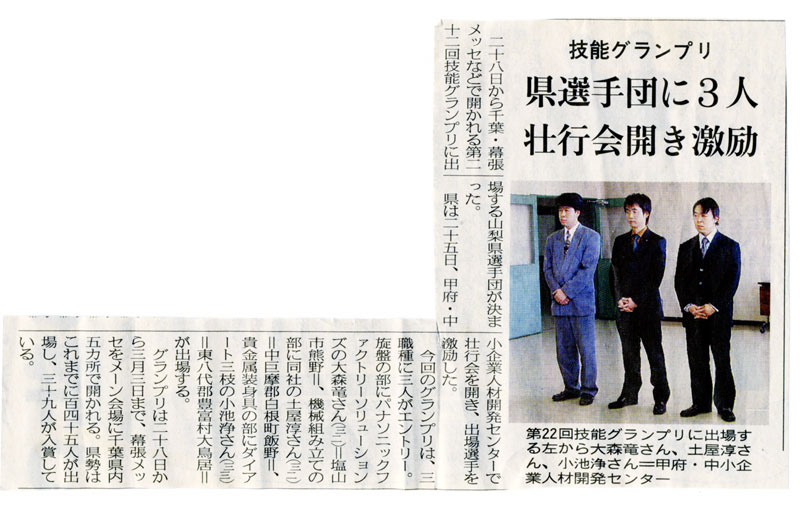 第22回技能グランプリ全国大会1位入賞(厚生労働大臣賞受賞) 山梨県から山梨県優秀技能者表彰